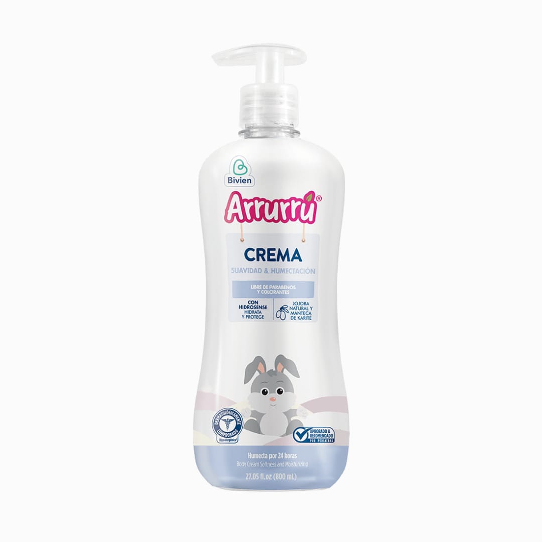 La piel de tu bebé es muy sensible y delicada, por lo que necesita un cuidado especial. Arrurrú crema suavidad & humectación contiene hidrosense (mezcla de ingredientes naturales únicos de Arrurrú), que cuida la delicada piel del bebé ayudando a protegerla y retener la humedad de su piel mientras la nutre e hidrata, dejándola suave hasta por 24 horas, con un delicioso aroma a leche de almendras que a su vez transmitirán esa sensación de caricia y cuidado que quieres para tu bebe. Rápida absorción.